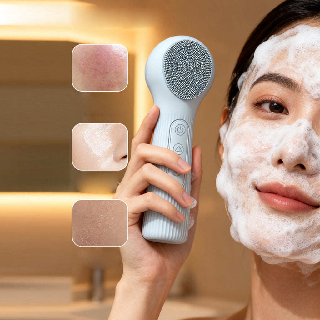 Dull to Dewy Heated Silicone Facial SPA Brush with Dual-Sided Deep Cleansing Exfoliator